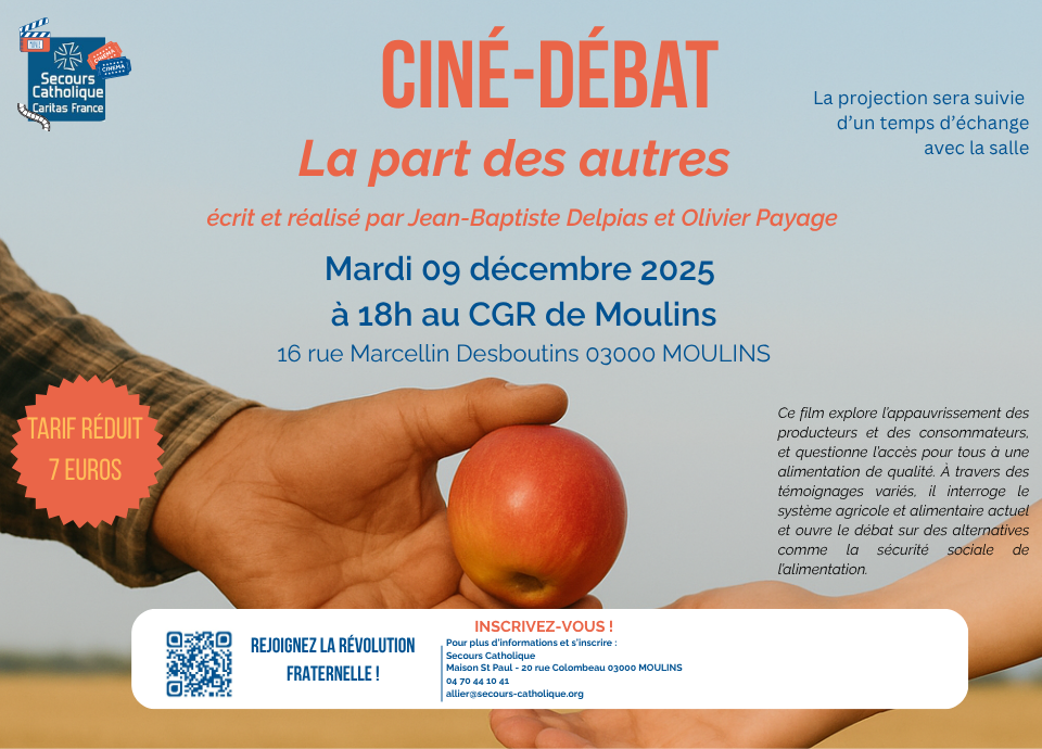 À l’occasion de la sortie de notre rapport statistique sur l’évolution de la pauvreté, nous organisons un ciné-débat autour du film “La Part des autres”, le mardi 09 décembre au CGR de Moulins.