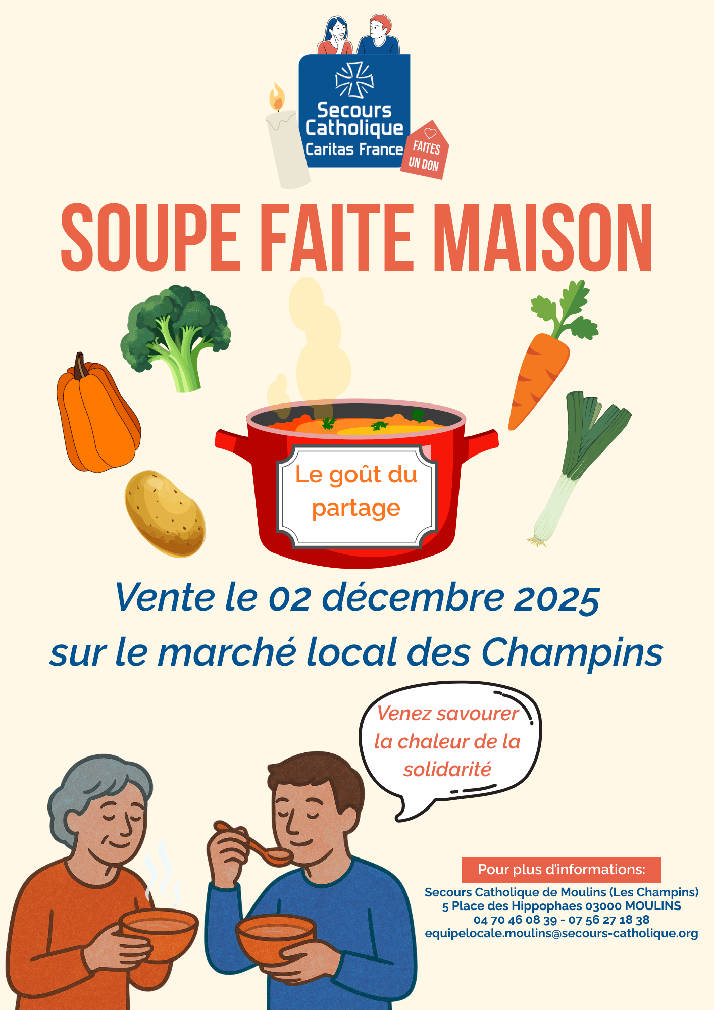 Préparée par les bénévoles, cette soupe est faite à partir de légumes frais. Une belle façon de se réchauffer tout en soutenant une action solidaire ! 🥣