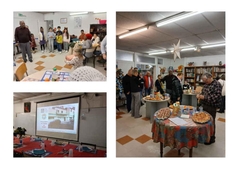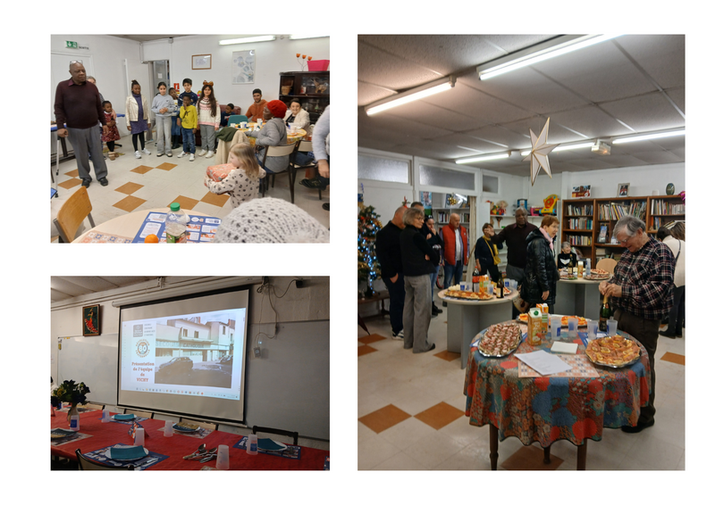 Le point d'orgue de ce mois de décembre fut sans nul doute le repas « Fraternoël » du samedi 20 décembre 2025 à Vichy. Ce moment d'exception a débuté par un buffet généreux offert par l’Épicerie Solidaire, suivi d’un couscous convivial préparé avec générosité par Saadia. Le partage du dessert et la distribution des cadeaux ont scellé ce moment de communion entre bénévoles et bénéficiaires. L'après-midi a été sublimé par le concert acoustique de Muriel Moulinet, alias Alphée Pergame, accompagnée de Jean-Pierre à la guitare et de Bernard.