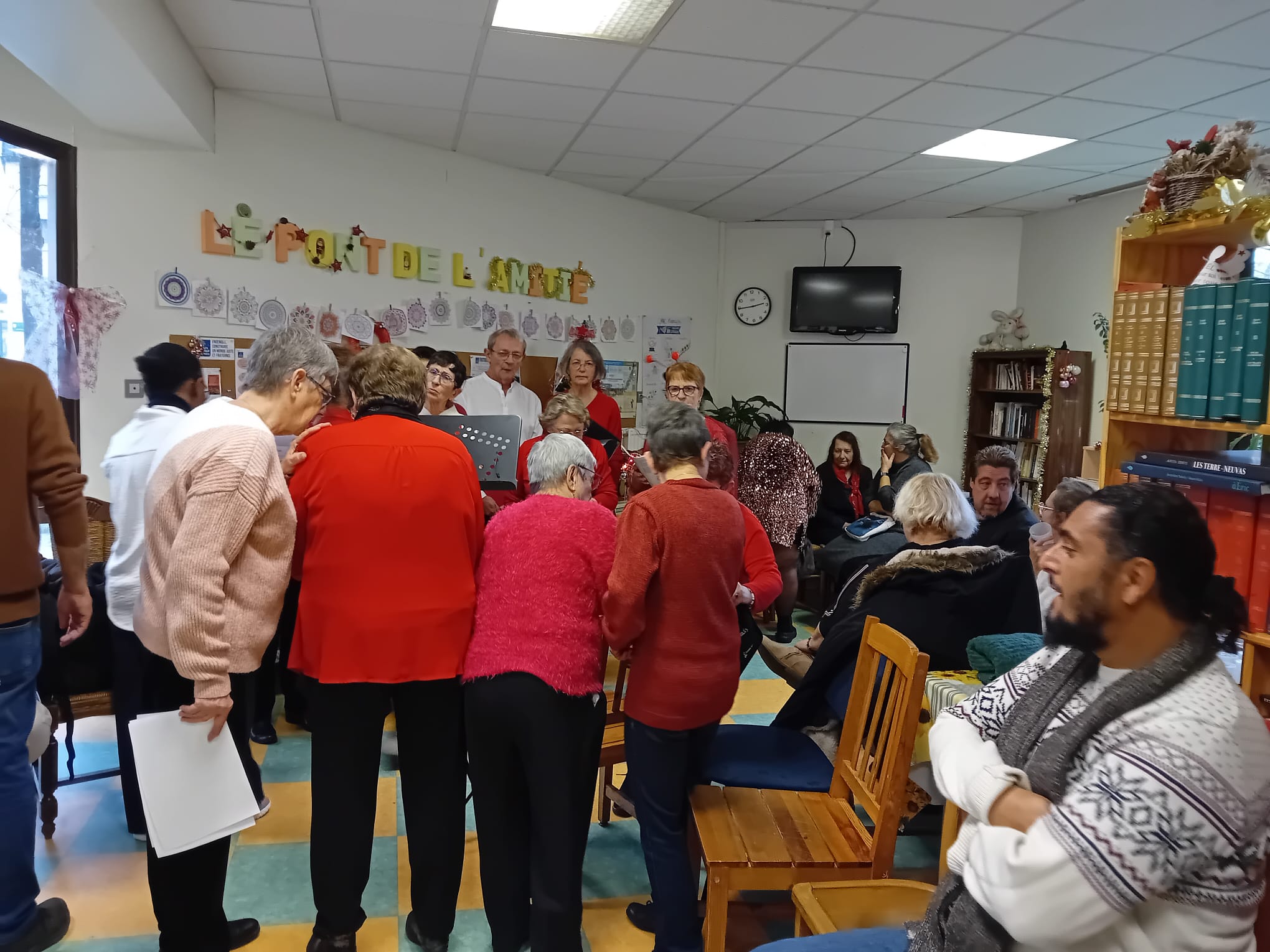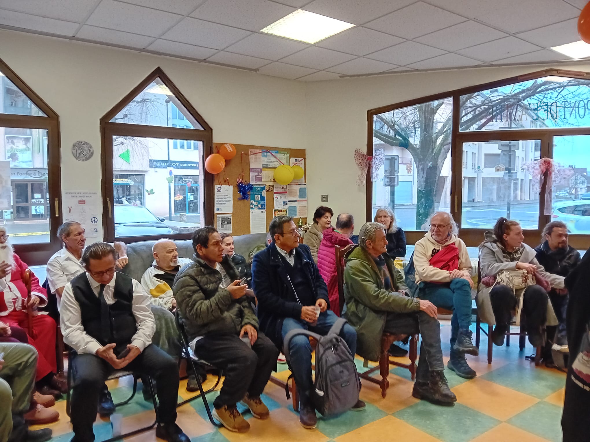 Le goûter organisé au « Pont de l’Amitié » à Moulins a ouvert ces festivités dans une atmosphère de joie partagée, réunissant bénévoles, personnes accueillies et le Père Lépée. La chorale de l’association et les notes de notre accordéoniste fidèle ont invité l’assemblée à la danse et au chant, tandis que les convives se régalaient de chocolat chaud, de bûches et de brioches. Ce moment de convivialité a été prolongé par une distribution de cadeaux personnalisés. Grâce à la collecte organisée par les élèves de l'établissement Saint-Benoît, chaque personne de la rue a pu recevoir des vêtements chauds accompagnés de petites attentions comme des bougies ou des objets artisanaux.