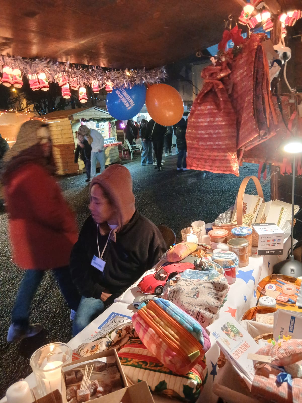 Installée dans un chalet joliment décoré, l’équipe locale a proposé diverses créations réalisées pour la campagne de fin d'année en équipes lors d'ateliers conviviaux. Gourmandises, confections artisanales et objets issus de l’atelier couture attirant de nombreux visiteurs curieux et bienveillants.